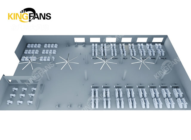 廠房車間應用大型工業(yè)風扇,能夠替代小型風扇達到通風降溫、